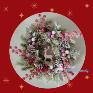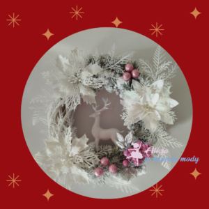 Wianek z białym reniferem kolor