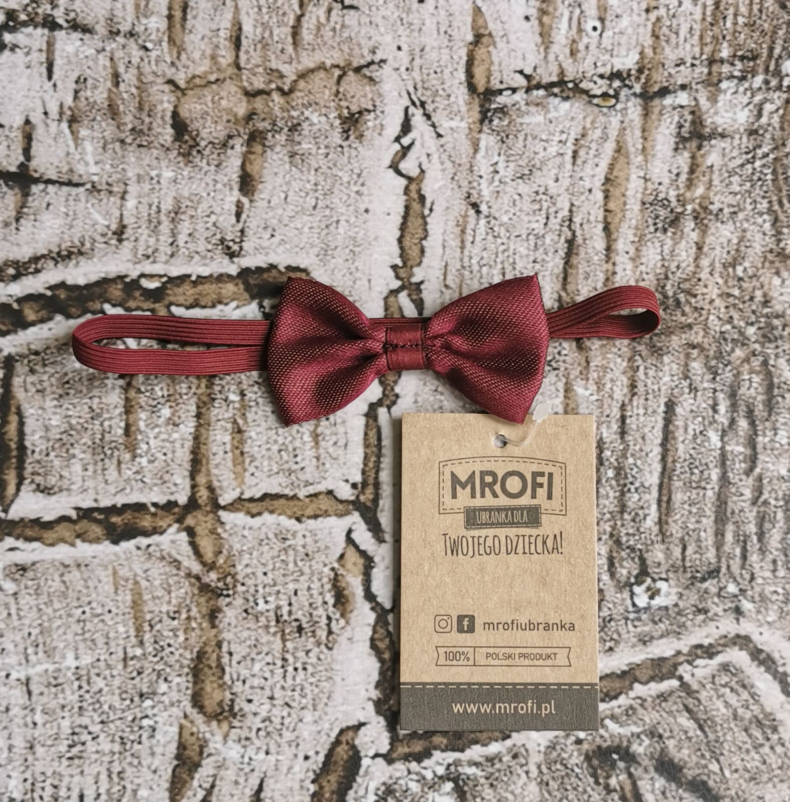 Elegancka miękka bordowa mucha na gumce. Jest świetnym dodatkiem, który podkreśli wyjątkowość stroju. Polski producent Mrofi.