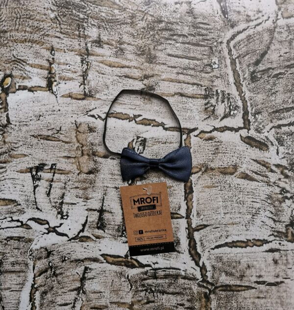 Elegancka miękka granatowa mucha na gumce. Jest świetnym dodatkiem, który podkreśli wyjątkowość stroju. Polski producent Mrofi.