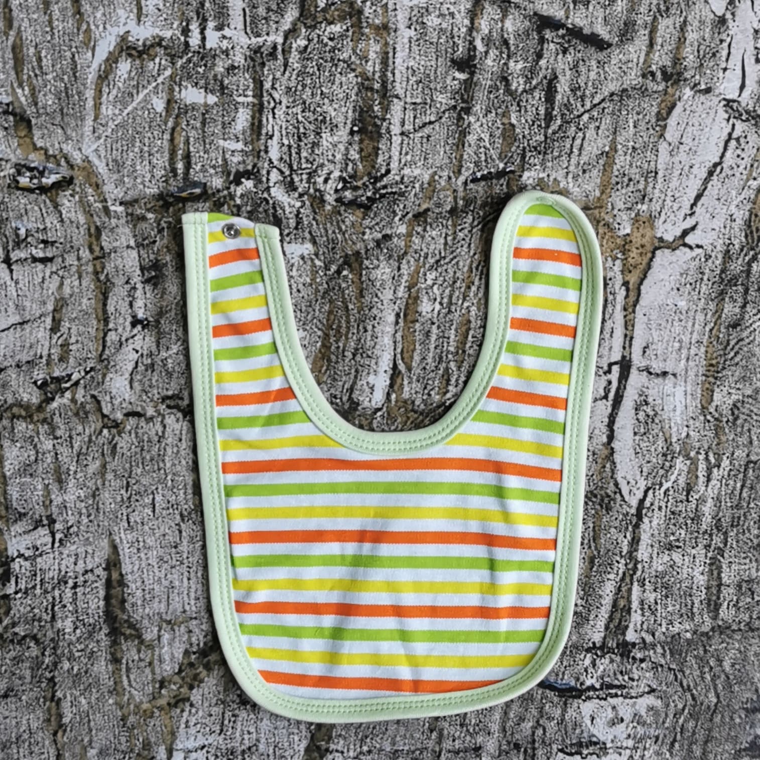 Śliniaczek z motywem pasków ,zapinany na napkę, 100% bawełna. Polski producent Mrofi.