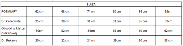 Rozmiar 62 cm, Rozmiar 68 cm, Rozmiar 74 cm, Rozmiar 80 cm, Rozmiar 86 cm, Rozmiar 92 cm