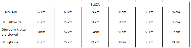 Rozmiar 62 cm, Rozmiar 68 cm, Rozmiar 74 cm, Rozmiar 80 cm, Rozmiar 86 cm, Rozmiar 92 cm