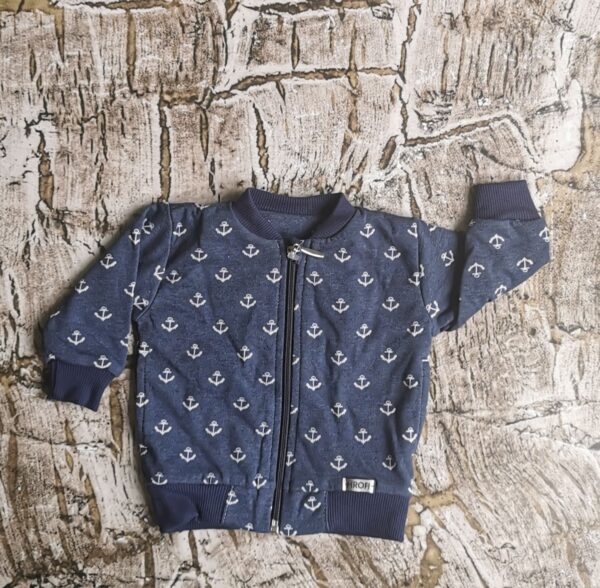 Bluza z motywem w kotwice. Bardzo wygodna, zapinana na zamek błyskawiczny. Zakończenie zamka jest bezpieczne dla dziecka i zapobiega uszczypnięciu.  Skład materiału to 100 % bawełna. Polski producent Mrofi.