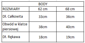 | Rozmiar | Rozmiar 62 cm, Rozmiar 68 cm |