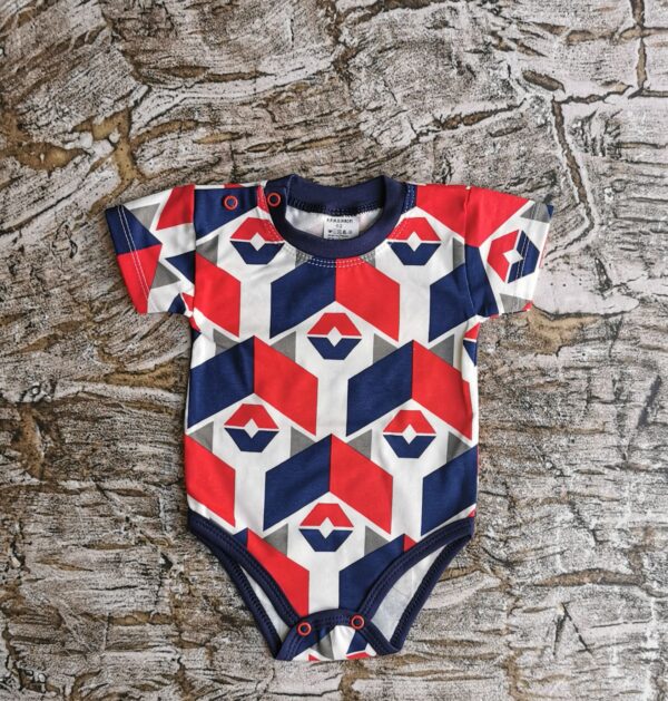 Body z motywem kolorowych figur.  Skład: 95% bawełna, 5% elastan. Polski producent Mrofi.