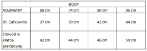 | Rozmiar | Rozmiar 68 cm, Rozmiar 74 cm, Rozmiar 80 cm, Rozmiar 86 cm |