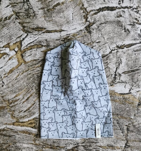 Szara czapka misie, miękka i elastyczna. Skład 95% bawełna 5% elastan. Polski producent Mrofi.