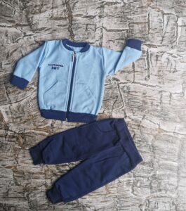 Wygodny dresik niebiesko granatowy . Bluza zapinana na zamek błyskawiczny bezpieczny dla dziecka. Skład materiału: 95% bawełna, 5% poliester .Polski producent Mrofi