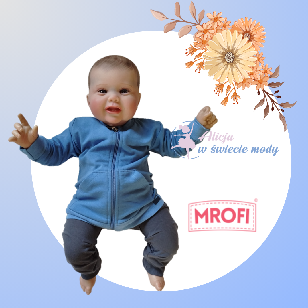 Sportowy dres  .  Bluza zapinana na zamek błyskawiczny (bezpieczny dla dziecka) oraz grafitowe spodnie .  Skład: 95% bawełna 5%elastan.Polski producent Mrofi.