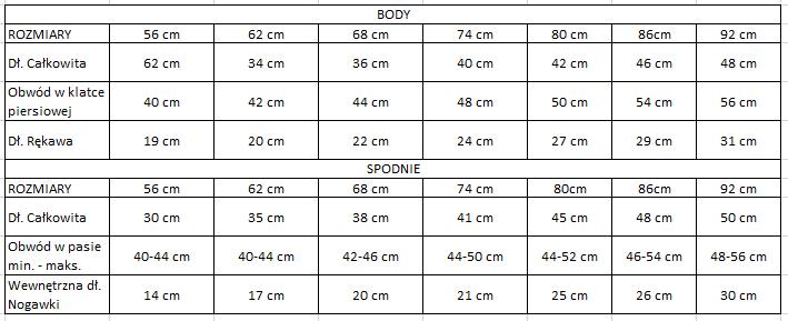 | Rozmiar | Rozmiar 62 cm, Rozmiar 68 cm |