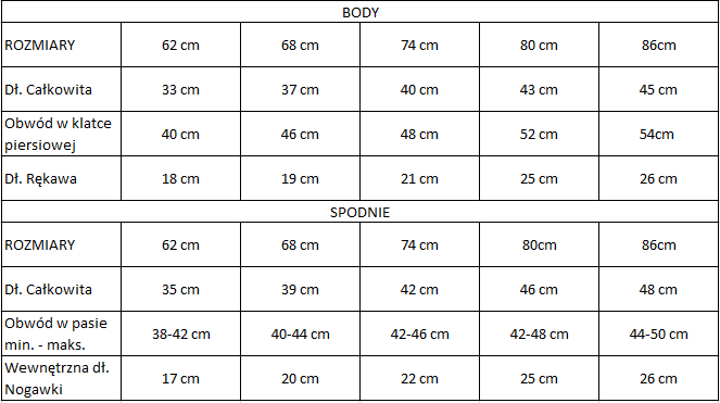 | Rozmiar | Rozmiar 62 cm, Rozmiar 74 cm, Rozmiar 80 cm, Rozmiar 86 cm |
