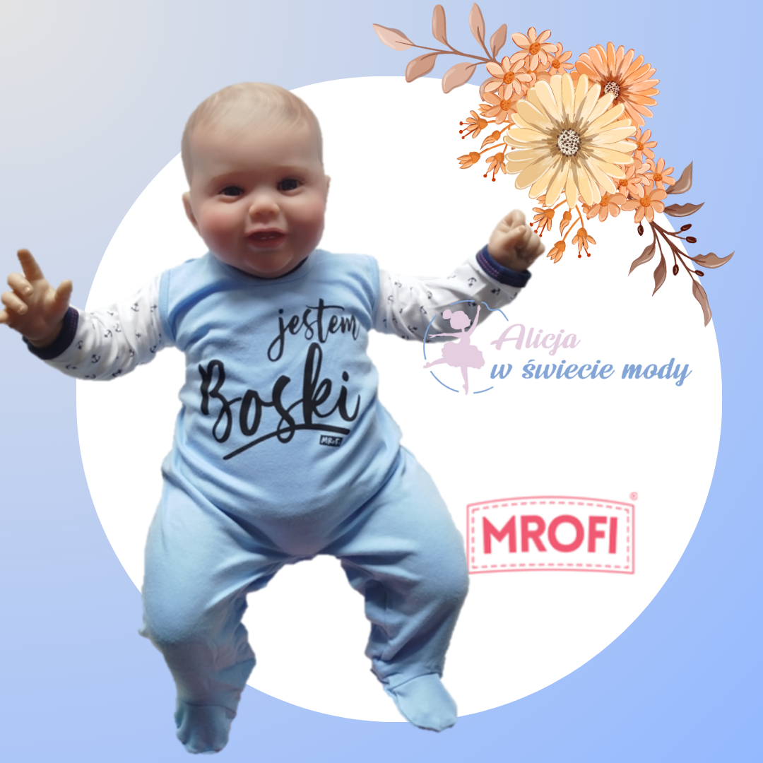 Wygodny  śpioch z napisem Jestem boski   oraz   kaftanik   . Skład materiału to  100% bawełna .Polski producent Mrofi.