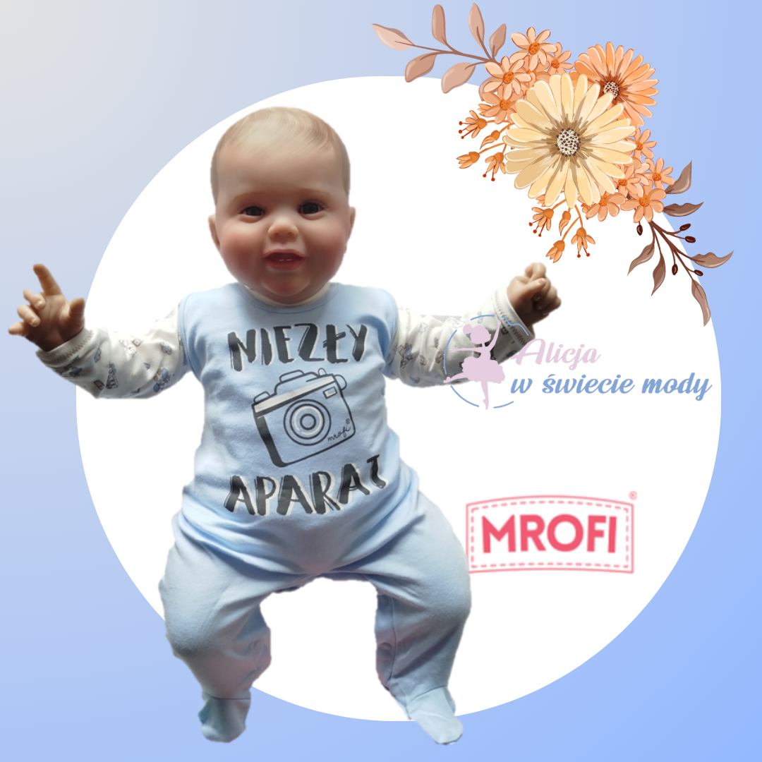 Wygodny śpioch z napisem niezły aparat oraz kaftanik . Skład materiału to 100% bawełna .Polski producent Mrofi.