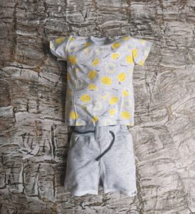 Letni komplecik . Skład materiału: koszulka 95% bawełna, 5% elastan, spodenki 100% bawełna . Polski producent Mrofi.