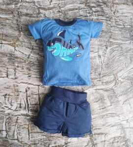 Letni komplecik z motywem rekina . Skład materiału: 100% bawełna . Polski producent Mrofi.