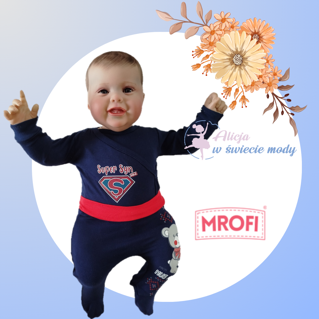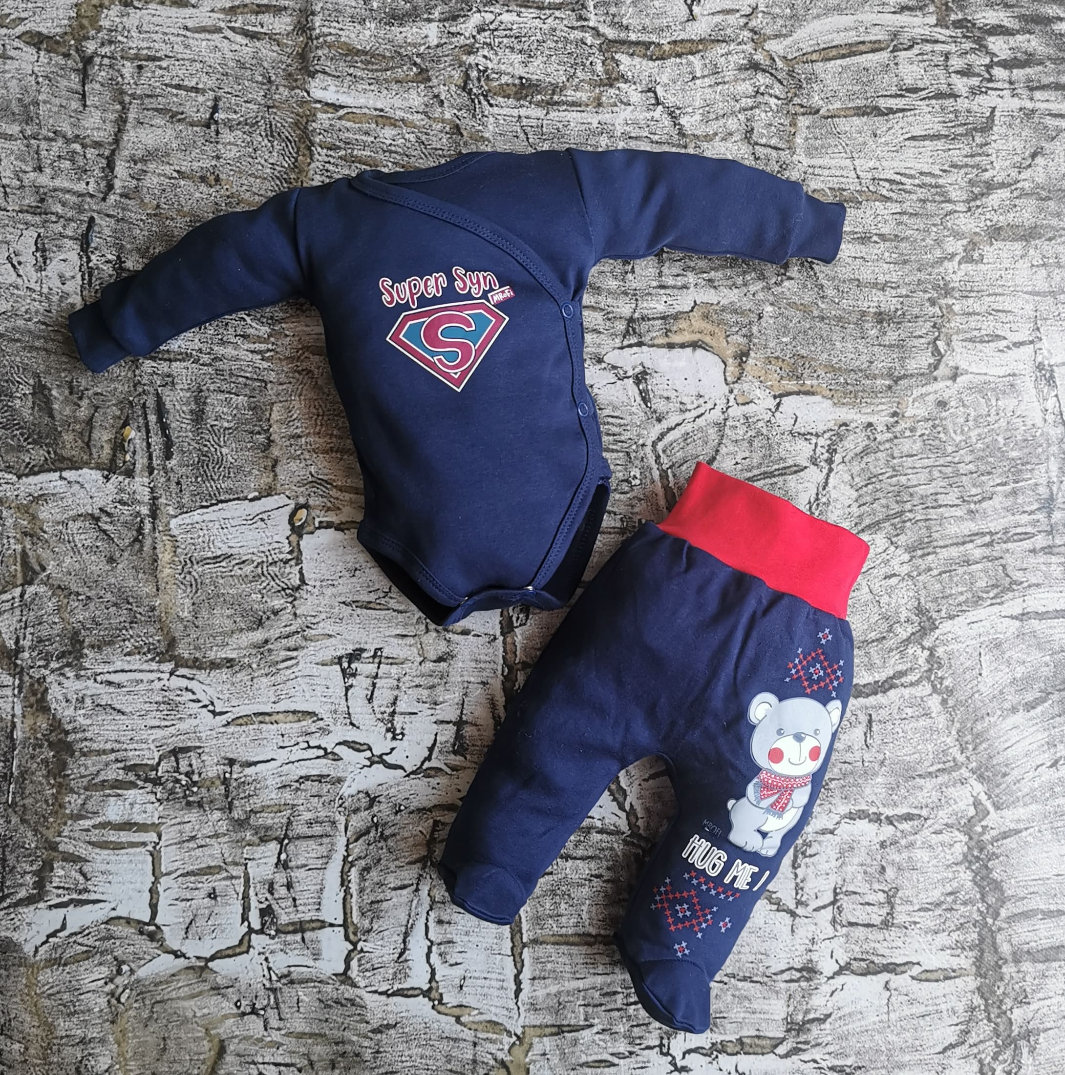 Komplecik z napisem super syn. Body kopertowe . Skład materiału:   100% bawełna .  Polski producent Mrofi.