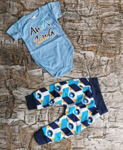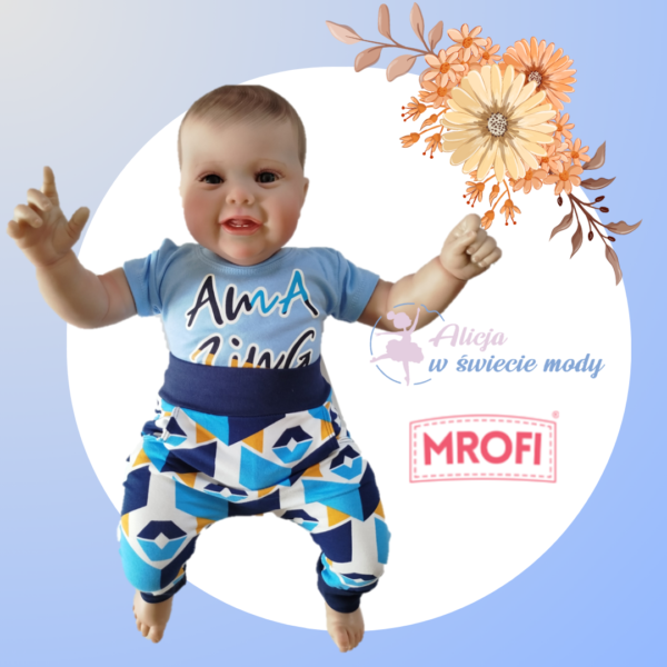 Komplecik z motywem figur 3D. W skład kompleciku wchodzą body oraz spodenki. Skład materiału to 100% bawełna. Polski producent Mrofi.