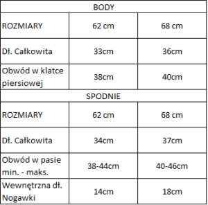 | Rozmiar | Rozmiar 62 cm, Rozmiar 68 cm |