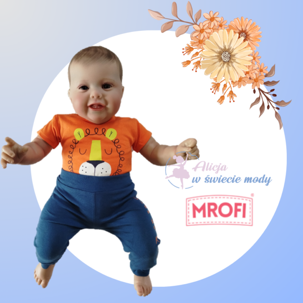 Komplet body i spodnie  . Body z motywem lwa  oraz  granatowe spodnie .  Skład materiału:   100% bawełna .  Polski producent Mrofi.