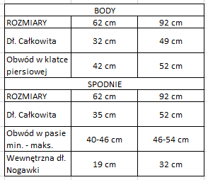 Rozmiar 62 cm, Rozmiar 92 cm