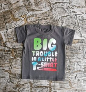 Koszulka z napisem Big trouble. Skład materiału: bawełna 95% oraz 5% elastan . Polski producent Mrofi.
