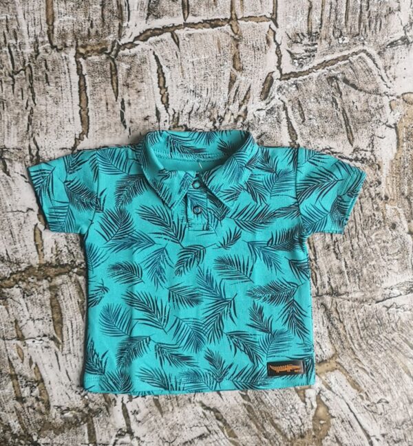 Koszulka chłopięca niebieska w palmy. Skład materiału: bawełna 95% oraz 5% elastan. Polski producent Mrofi.