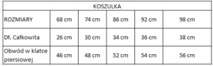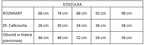 | Rozmiar | Rozmiar 68 cm, Rozmiar 74 cm, Rozmiar 86 cm, Rozmiar 92 cm, Rozmiar 98 cm |