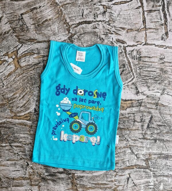 Koszulka ramka z napisem Gdy dorosnę za lat parę, poprowadzę prawdziwą koparę .  Skład materiału: bawełna 100% . Polski producent Mrofi.