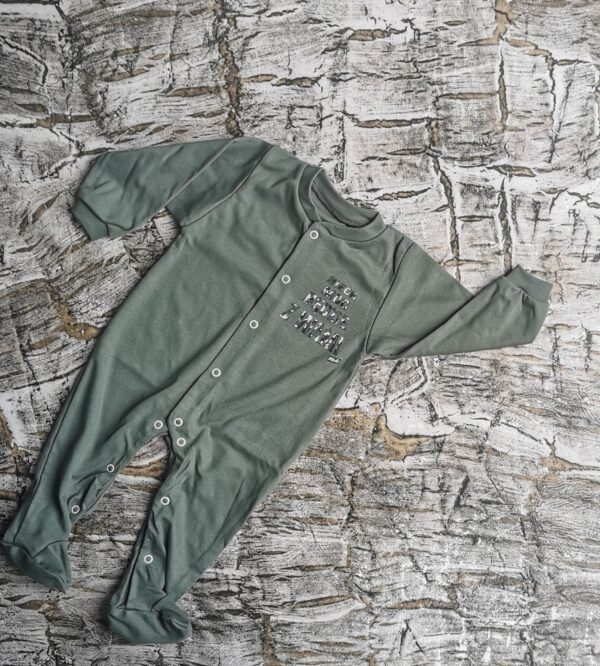 Pajacyk z napisem niech moc będzie z wami z motywem moro. Skład 100% bawełna. Polski producent Mrofi.