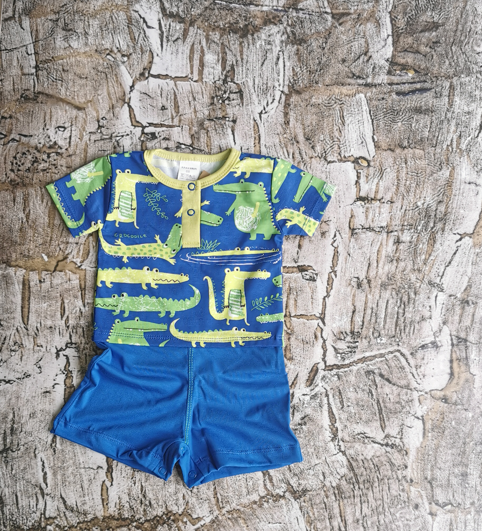 Rampers z motywem aligatorów .Skład materiału: 95% bawełna, 5% elastan. Polski producent Mrofi.
