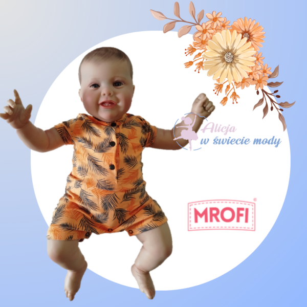 Rampers z motywem listków .Skład materiału: 95% bawełna, 5% elastan. Polski producent Mrofi.