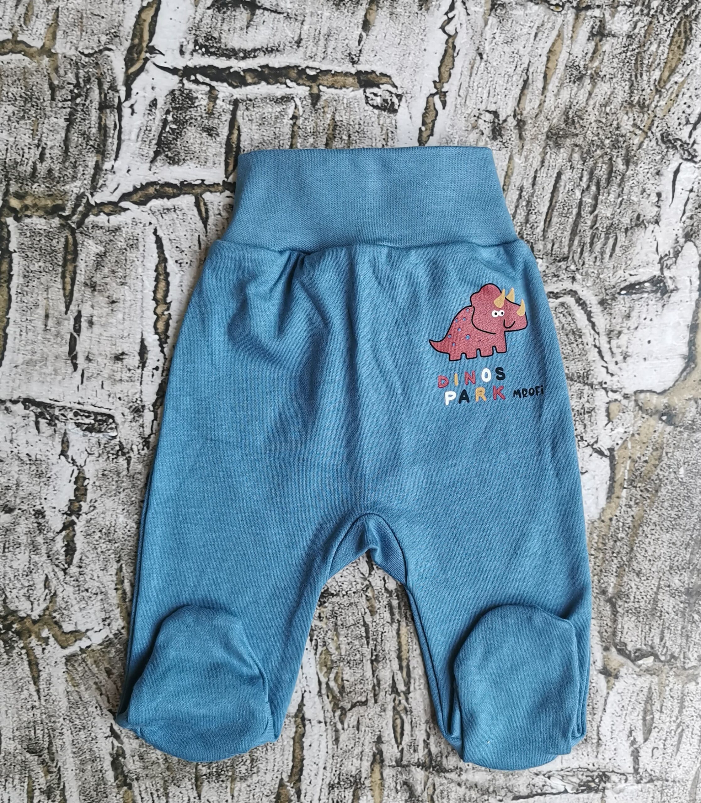 Miękkie i wygodne bezuciskowe półśpioszki z motywem dinozaura. Wykonane przez polskiego producenta Mrofi. Skład materiału: 100% bawełna .
