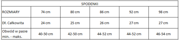 Rozmiar 74 cm, Rozmiar 80 cm, Rozmiar 86 cm, Rozmiar 92 cm, Rozmiar 98 cm