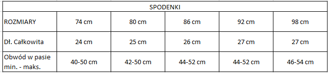 Rozmiar 74 cm, Rozmiar 80 cm, Rozmiar 86 cm, Rozmiar 92 cm, Rozmiar 98 cm