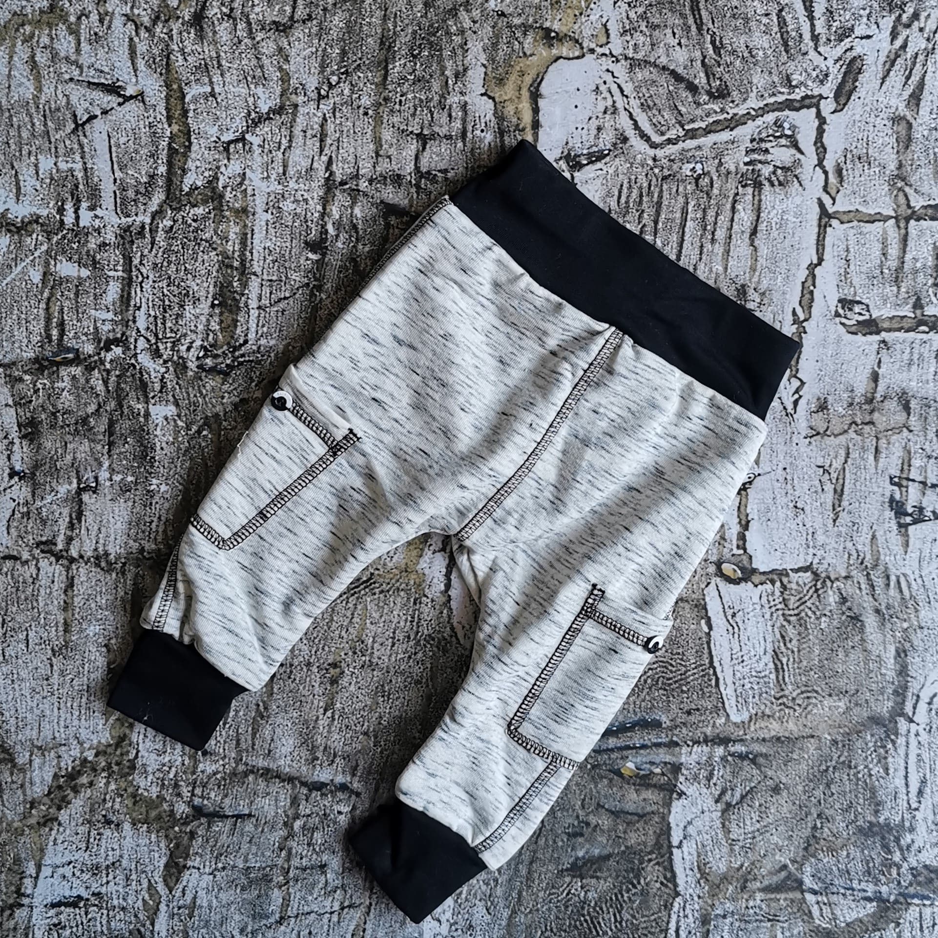 Miękkie i wygodne spodnie dla chłopca.  Wykonane przez polskiego producenta Mrofi. Skład materiału: 90% bawełna oraz 10% poliester. Z obu stron nogawek mają kieszonki z guziczkiem.