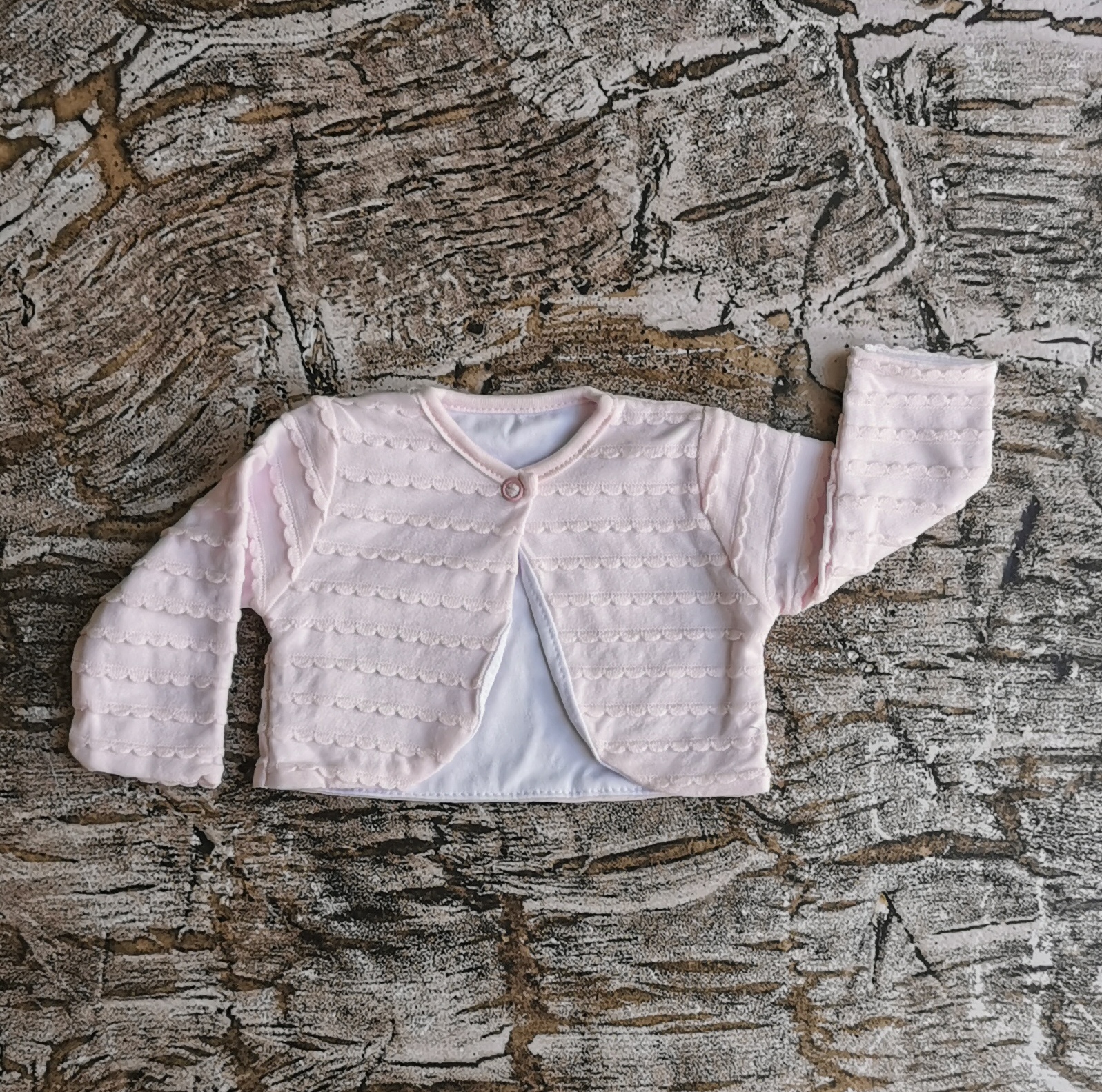 Eleganckie różowe bolerko, idealnie dopełni strój małej księżniczki. Z przodu zapinane na napkę co ułatwia zdejmowanie i zakładanie. Skład materiału: 100% bawełna. Polski producent Mrofi.