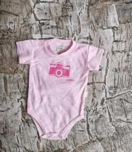 Body z motywem aparatu. Skład: 95% bawełna, 5% poliester. W rozm 62 cm występują body kopertowe w rozm 68 cm body zwykłe. Polski producent Mrofi.