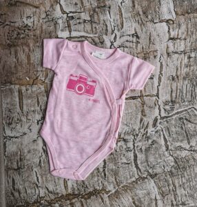 Body z motywem aparatu. Skład: 95% bawełna, 5% poliester. W rozm 62 cm występują body kopertowe w rozm 68 cm body zwykłe. Polski producent Mrofi.