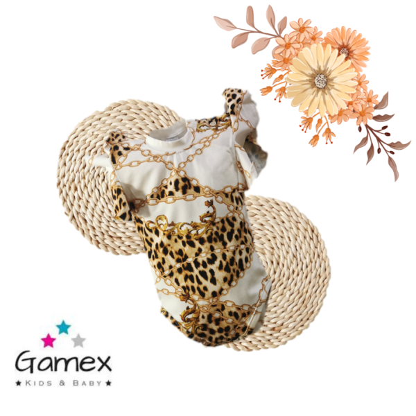 Body glamour z modnym wzorem z falbankami na rękawkach   .  Skład: 95% bawełna, 5% elastan .  Polski producent Gamex.