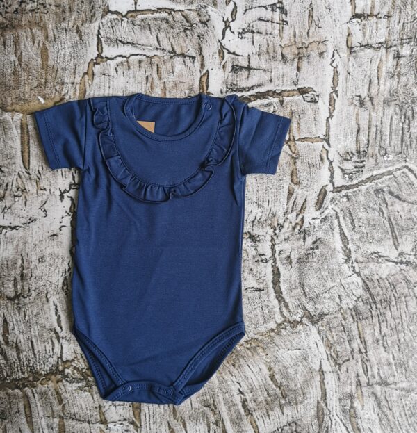 Body w kolorze granatowym z falbanką. Skład: 95 % bawełna, 5% elastan. Polski producent Mrofi.