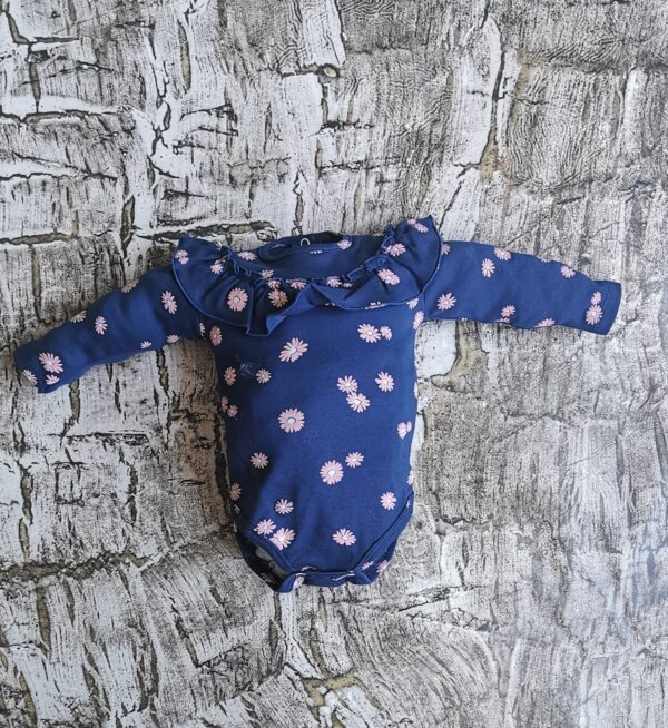 Body z motywem kwiatowym. Z tyłu zapinane na napki co ułatwia zakładanie oraz zdejmowanie. Z przodu znajduje się piękna falbanka. Skład: 100% bawełna. Polski producent Mrofi.