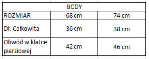 | Rozmiar | Rozmiar 68 cm |