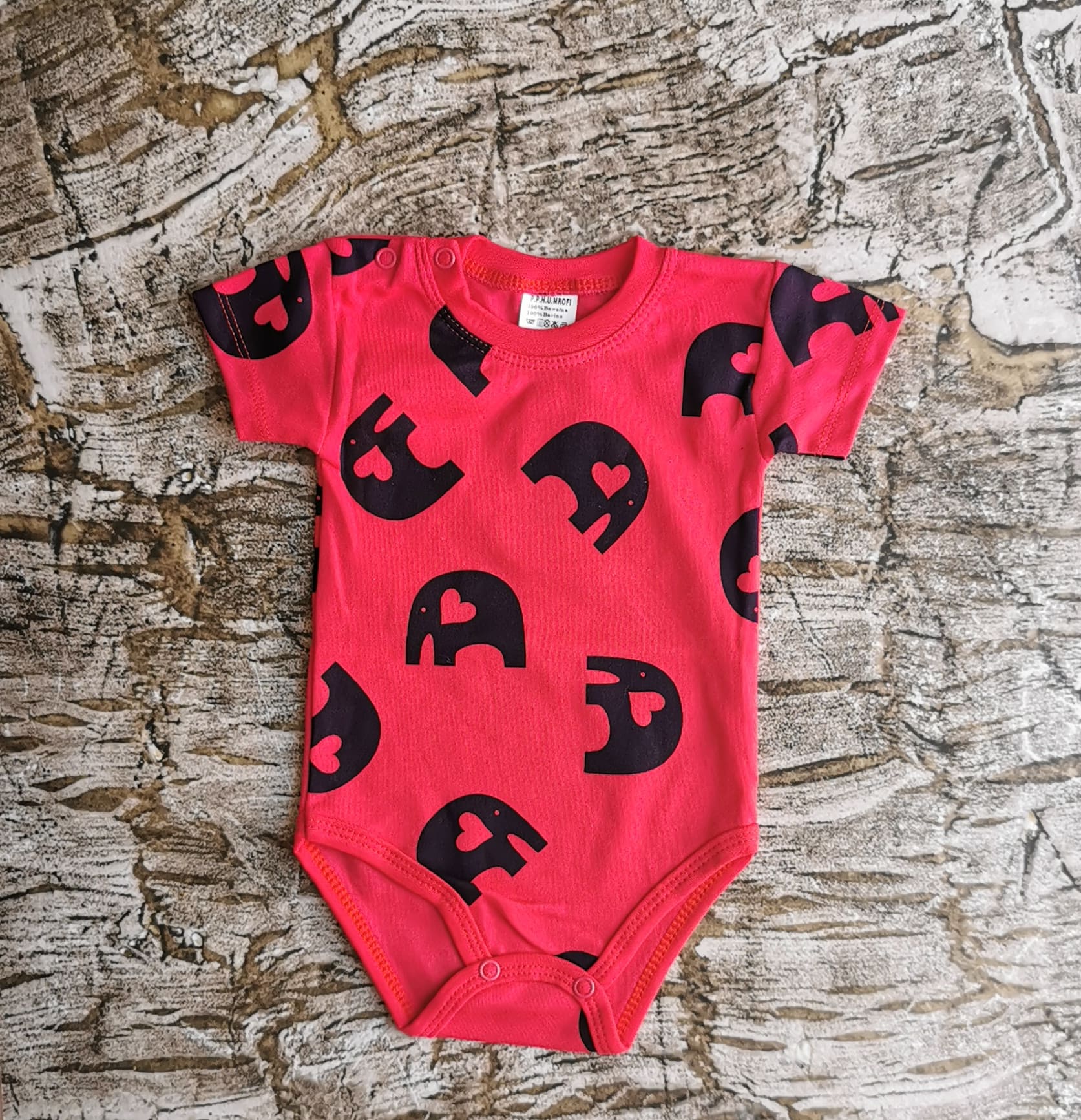 Body z motywem słoników . Na ramieniu zapinane na napki co ułatwia ich zakładanie oraz zdejmowanie. Skład: 100% bawełna. Polski producent Mrofi.