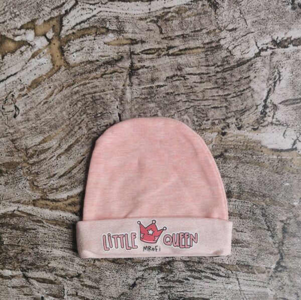 Różowa czapeczka z napisem little queen . Skład 95% bawełna, 5% elastan . Polski producent Mrofi.