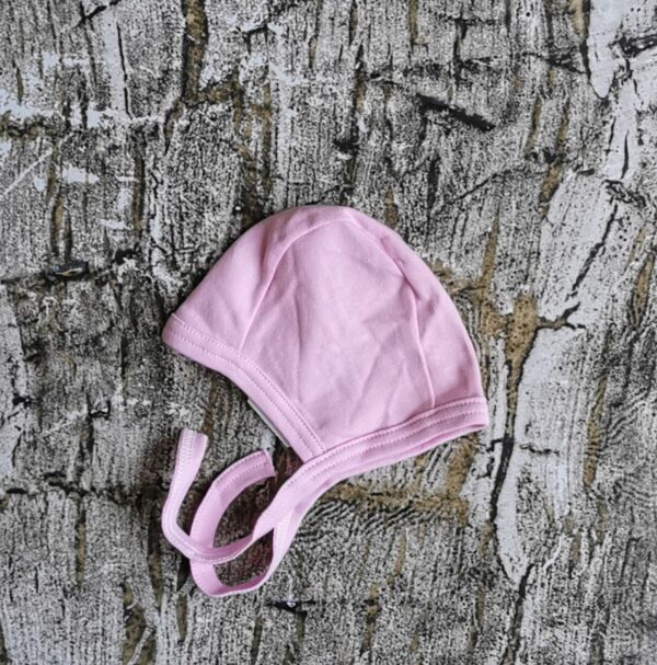 Wiązana czapeczka w kolorze jasnego różu . Skład 100% bawełna . Polski producent Mrofi.