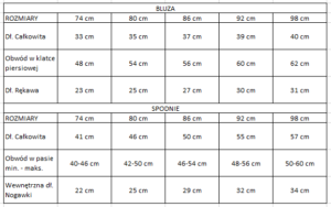 | Rozmiar | Rozmiar 74 cm, Rozmiar 80 cm, Rozmiar 86 cm, Rozmiar 92 cm, Rozmiar 98 cm |