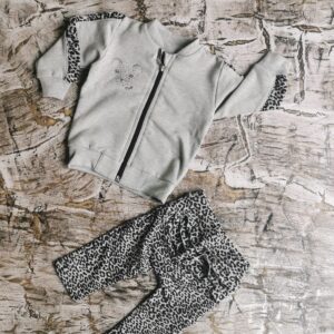 Dres z motywem myszki minnie . Miły w dotyku dresik, zapinany na zamek błyskawiczny (bezpieczny dla dziecka) . 95% bawełna 5% elastan Polski producent Mrofi.