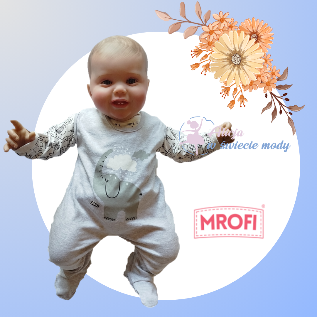 Wygodny kaftanik z motywem słoni  oraz śpioch.  Skład materiału to śpioch  95%  bawełna , 5% poliester, kaftan 100% bawełna .Polski producent Mrofi.
