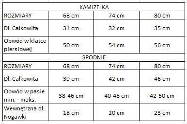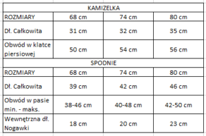 Rozmiar 68 cm, Rozmiar 74 cm, Rozmiar 80 cm