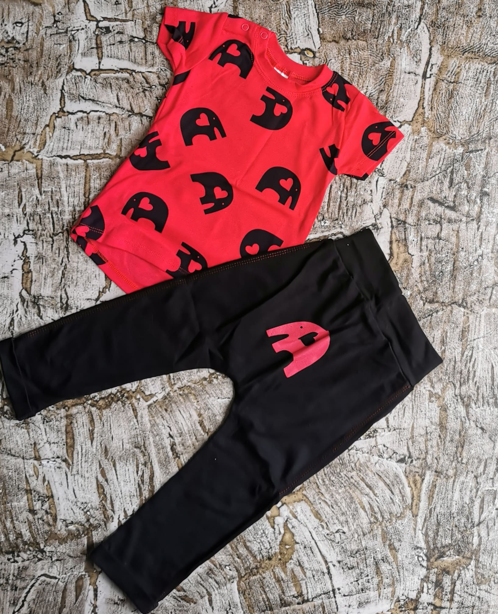 Bawełniany komplecik bluzeczka i spodnie  z motywem słonika, 100 bawełna, polski producent Mrofi.